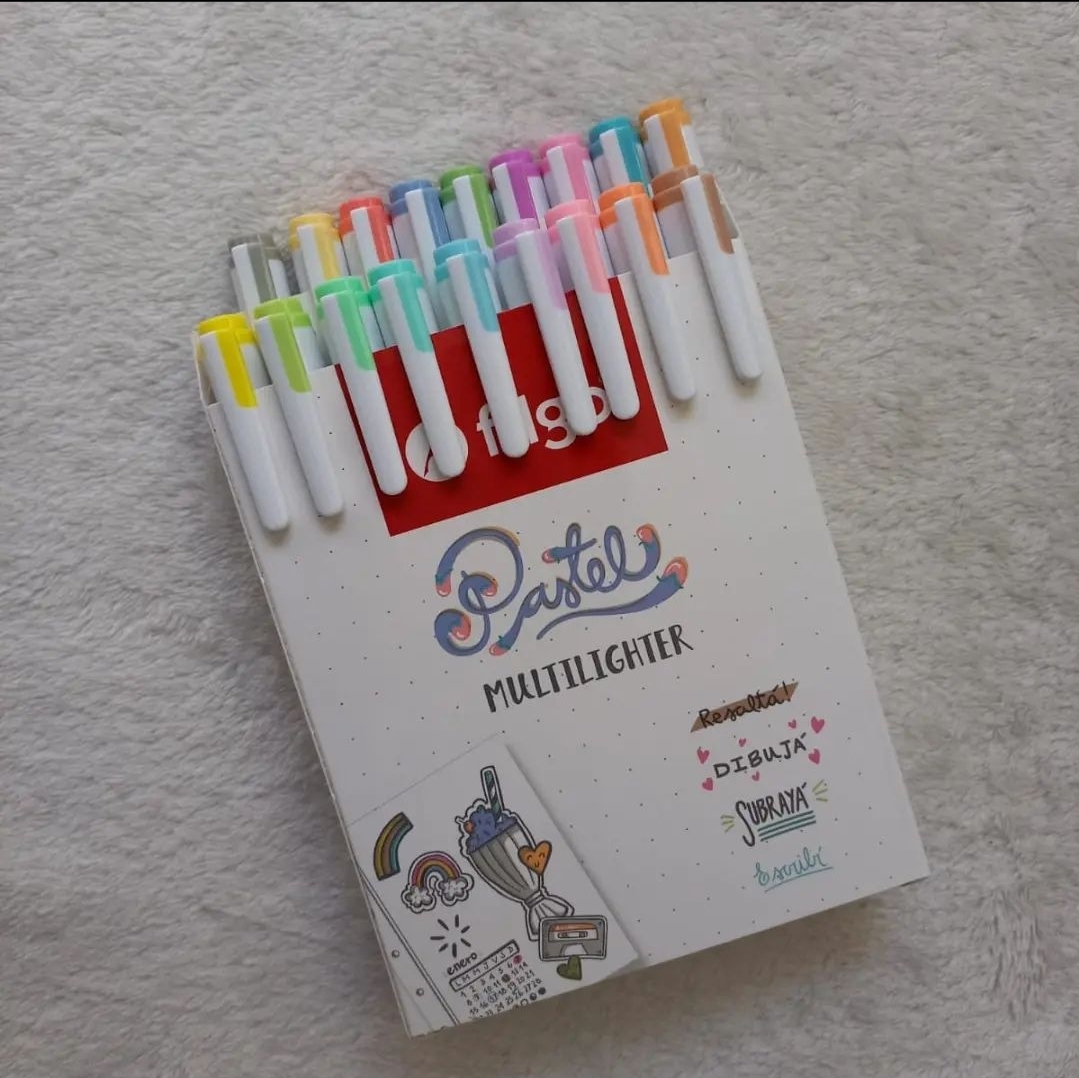 Resaltadores filgo doble punta x 18 colores pastel Punta fina 1.0 mm / punta biselada 1-3 mm – tinta al agua translucida sin xyleno ni tolueno – para resaltar sin correr la tinta