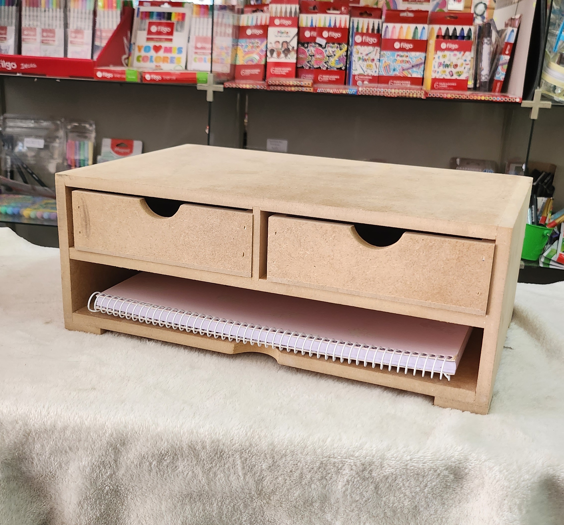 Tamaño perfecto, los 2 cajones tienen bastante espacio (de largo) Hermoso y práctico
